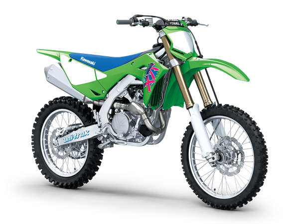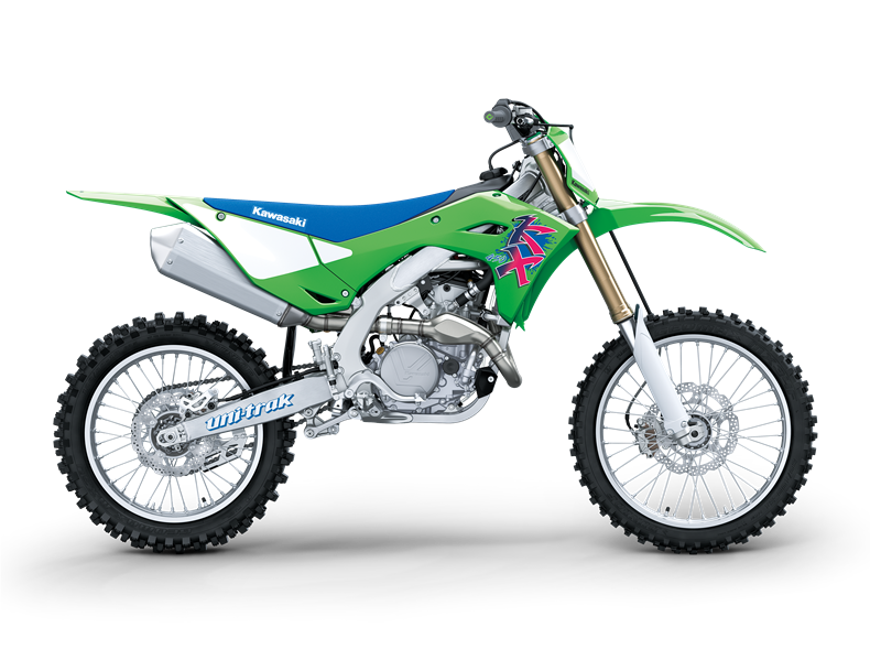 Bokem nezůstane ani KX450, která bude taktéž na první pohled poutat speciálním lakováním. Nejsilnější motor v historii Kawasaki bude tento závodní stroj pohánět a štíhlý hliníkový rám s optimalizovanou tuhostí v kombinaci s přepracovaným tlumením zajistí ty nejlepší jízdní vlastnosti za každých podmínek.